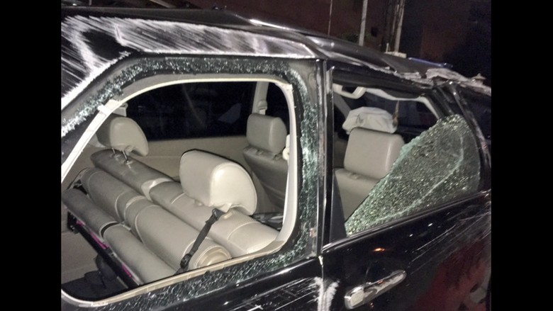 Dari foto itu terlihat bagian depan dan sisi kanan mobil ringsek, dan kaca-kaca penutup mobil yang berada di sisi kanan pecah. Air bag yang ada di sisi kemudi juga terlihat sudah digunakan.